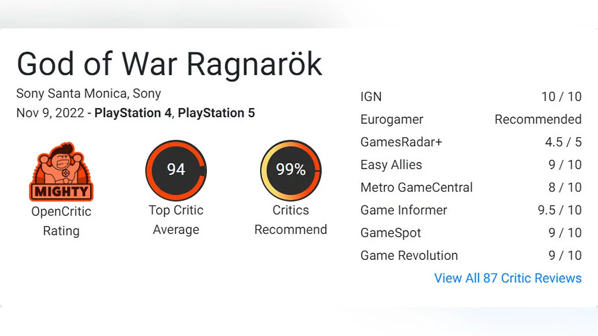 За неделю до релиза спало эмбарго на публикацию обзоров одного из главных проектов 2022 года — God of War: Ragnarok. Игра ожидаемом вызвала восторг у критиков — средний балл на OpenCritic и Metacritic составляет 94/100.