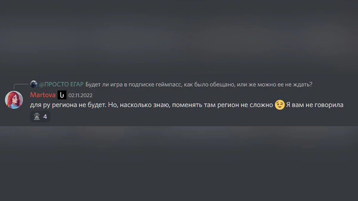 Вероятно, игру пришлось убрать из российского региона из-за эксклюзивной сделки с VK. Впрочем, разработчики совсем не против, если подписчики Game Pass просто просто сменят регион в настройках и скачают игру бесплатно.