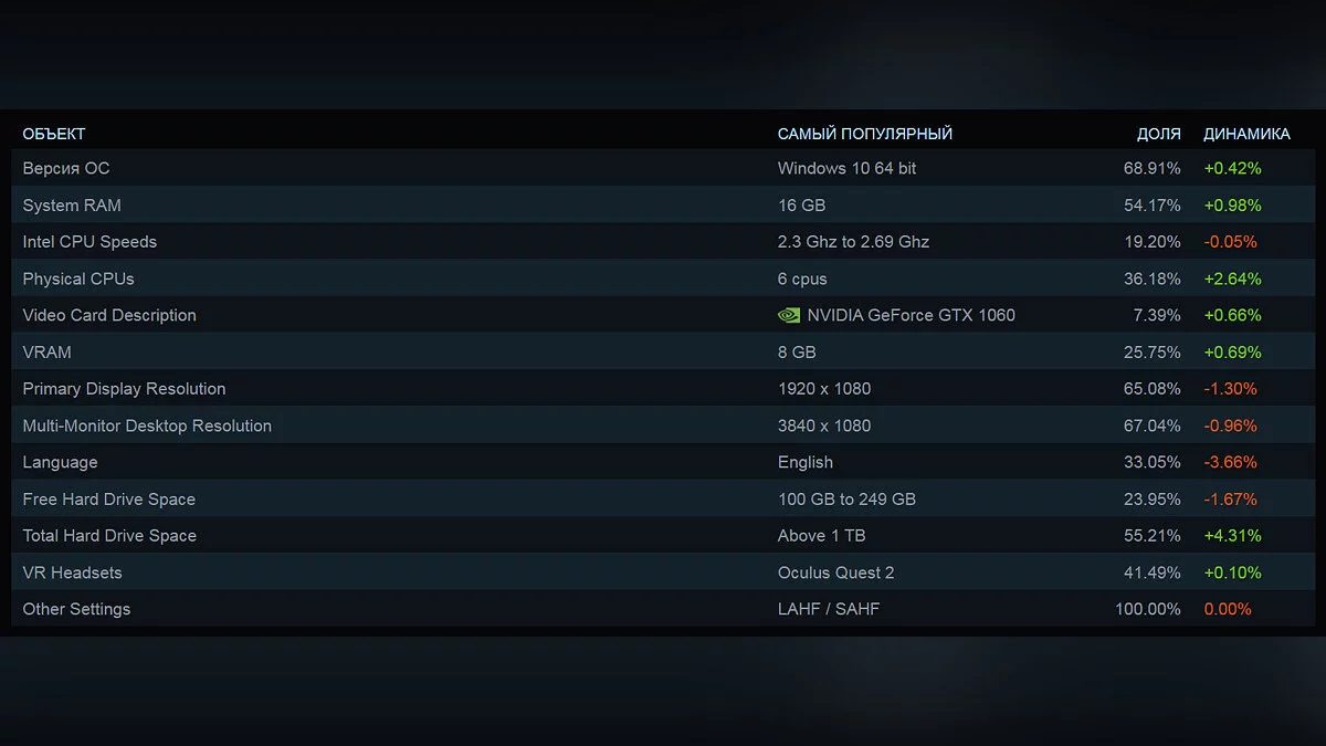 - Видеокарта — NVIDIA GeForce GTX 1060 (7.39%);