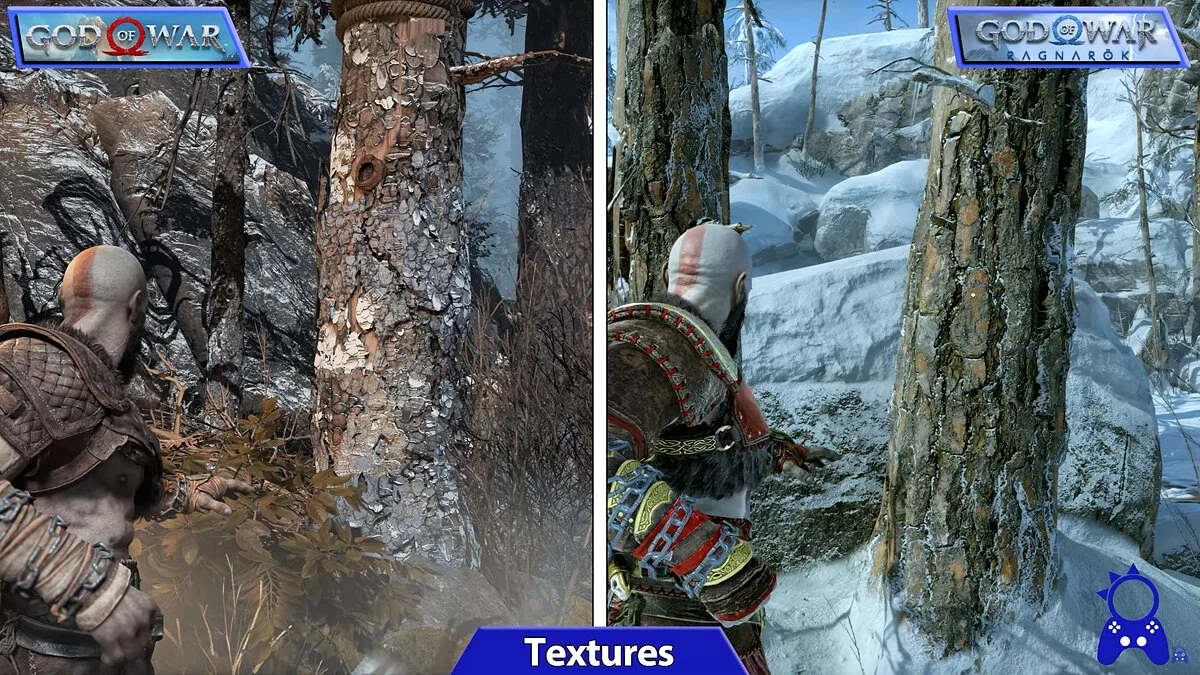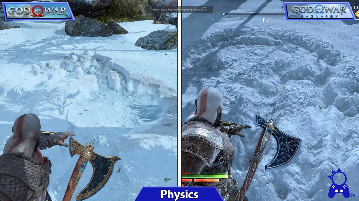 Значимых изменений довольно много: разработчики из Santa Monica Studio улучшили текстуры, освещение и физику. Снег, которого во второй части заметно прибавилось, выглядит намного реалистичнее: теперь на нем остаются глубокие следы.