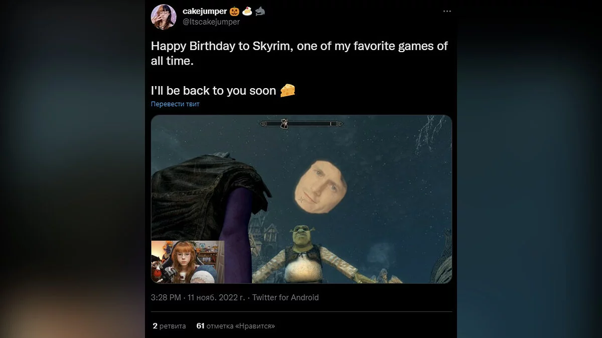Hey, you, you're finally awake! Сегодня исполнилось 11 лет с момента выхода The Elder Scrolls 5: Skyrim — игра вышла в красивую дату 11.11.11. Одну из главных игр прошлого десятилетия уже поздравили как разработчики, так и фанаты.