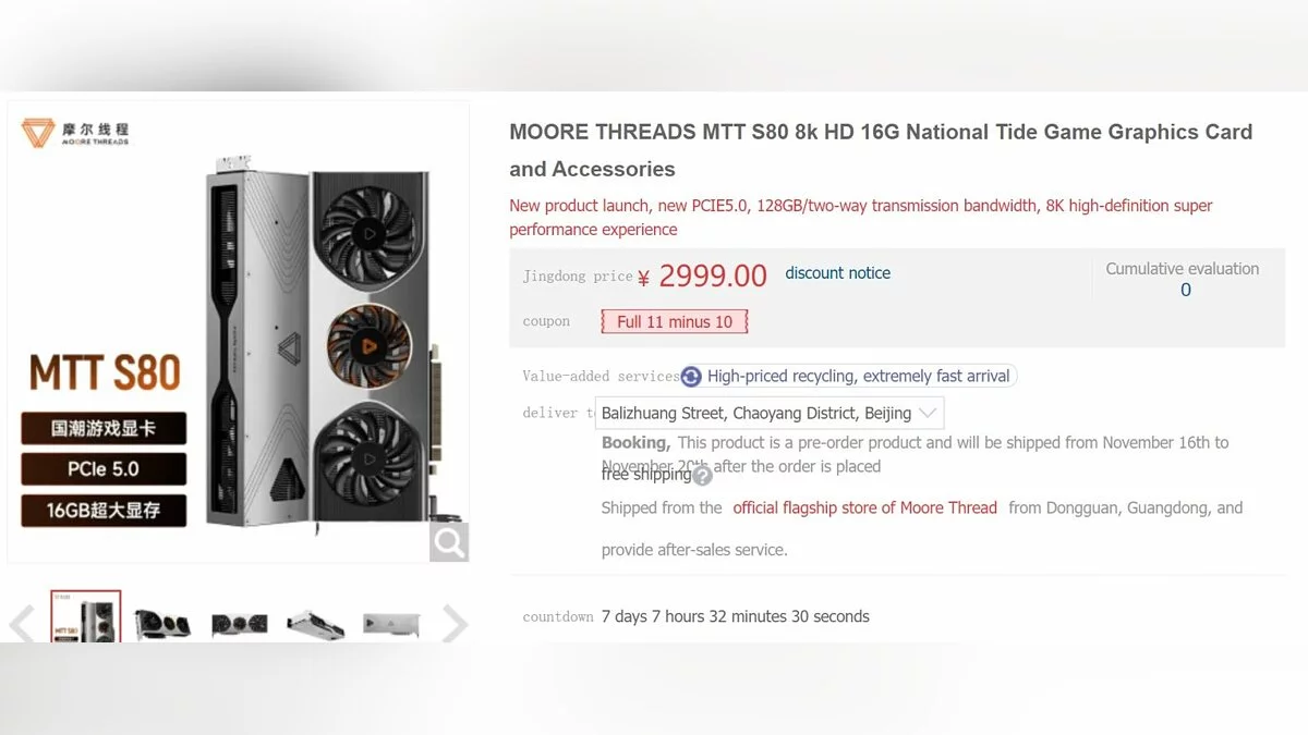 Похоже, что Китай намерен потягаться с США на рынке игровых видеокарт. Компания Moore Threads объявила о начале продаж игровой видеокарты MTT S80 с интерфейсом PCIe 5.0 x16.