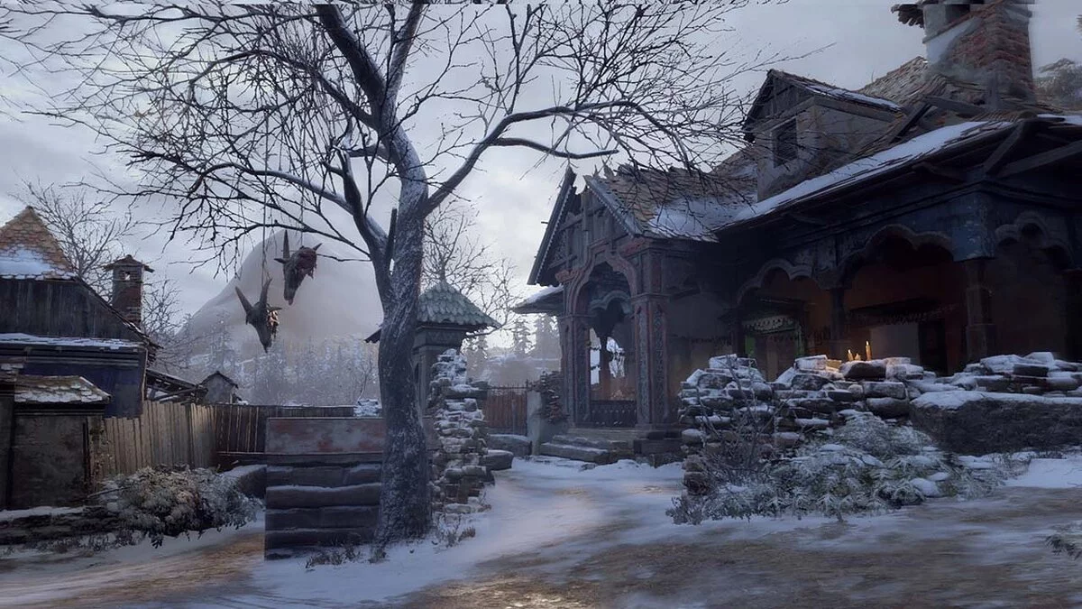Что касается новой локации, то она взята из Resident Evil Village. Это участок деревни, где расположена статуя Девы войны.