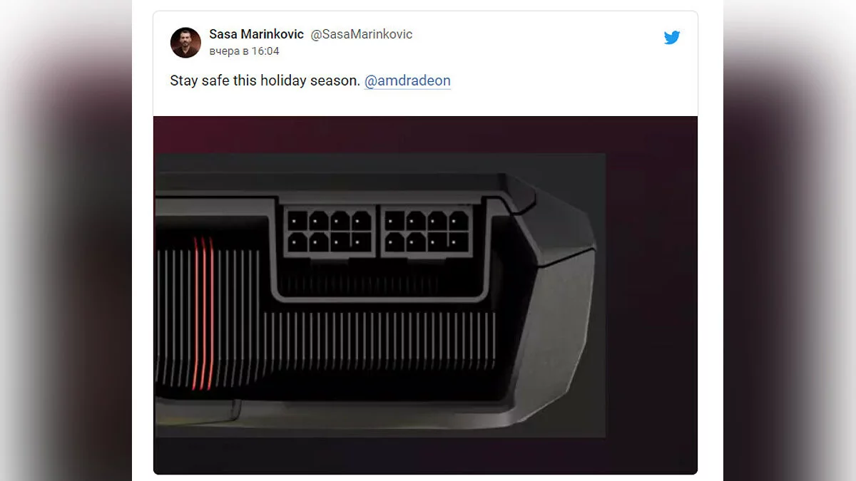 Старший директор AMD по маркетингу игрового подразделения Саса Маринкович (Sasa Marinkovic) потроллил конкурентов из NVIDIA в Twitter. Речь идёт о плавящихся кабелях питания 12VHPWR для видеокарт GeForce RTX 4090. Маринкович опубликовал фото с разъёмом питания Radeon RX 7900 и пожелал подписчикам «беречь себя» во время праздников.
