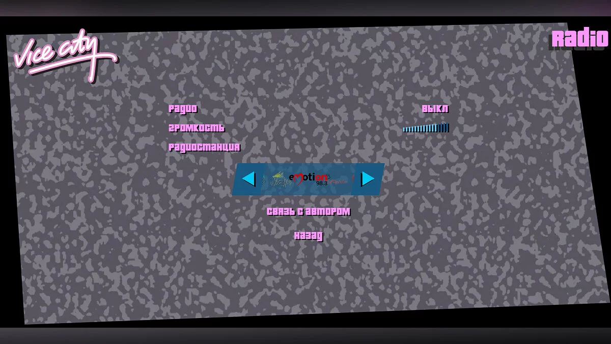 Меню каждого из трёх радио стилизовано под интерфейс оригинальных игр. На радиостанциях звучит не только музыка, но и внутриигровая реклама, диалоги и звонки на станцию — всё как в оригинале. Все песни, к слову, сортируются случайным образом. Это придаёт иллюзию непрерывного вещания.