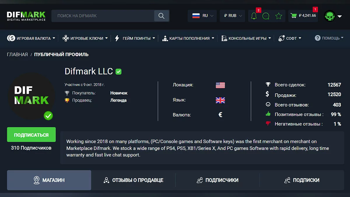 Напомним, что помимо консольных игр на P2P-площадке есть и много других товаров для геймеров и не только, включая ключи для Steam, игровые аккаунты, сервисы и программы, валюта для MMO, геймпоинты, DLC, а также карты пополнения.