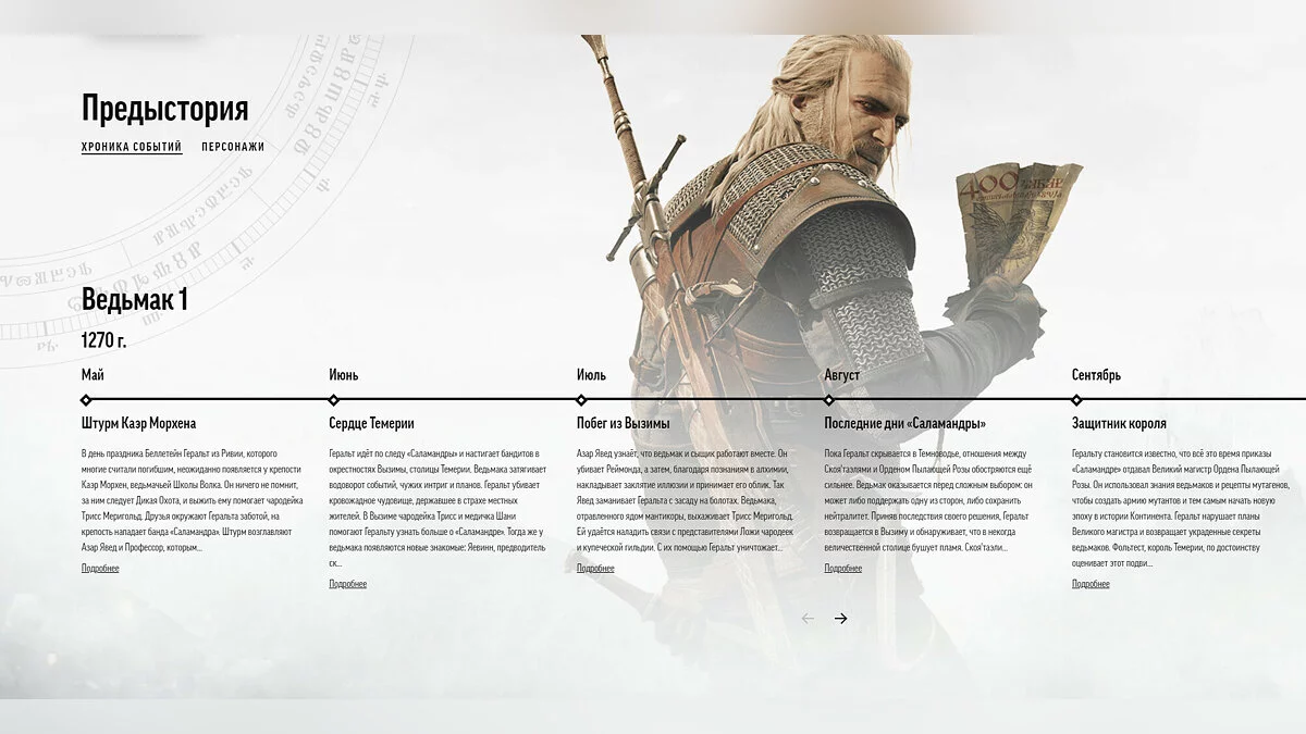 Там вы найдете новости, обои, скриншоты и не только. Если вы только знакомитесь с миром Ведьмака, то сможете узнать обо всех событиях, что случились с Геральтом к началу 3 части в особой хронологии.