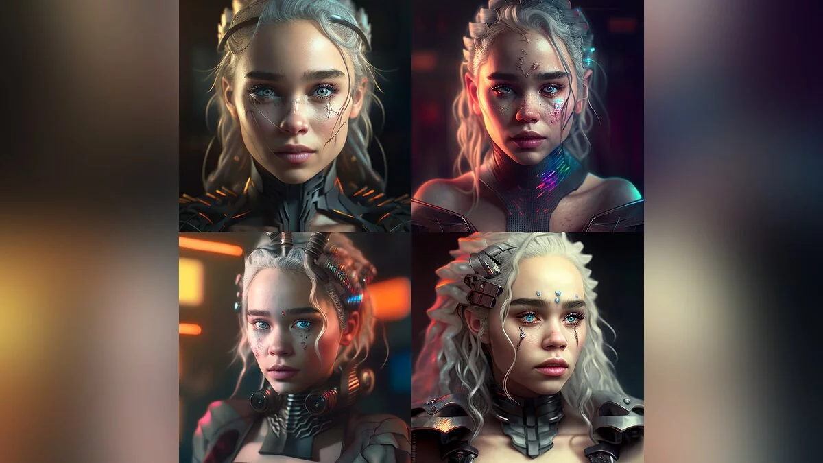 Владелец Telegram-канала «Джимми Нейрон» использовал нейросеть Midjourney, чтобы сгенерировать персонажей «Игры престолов» (Game of Thrones) в эстетике киберпанка. Пока не сообщается, какие именно настройки он использовал для генерации.