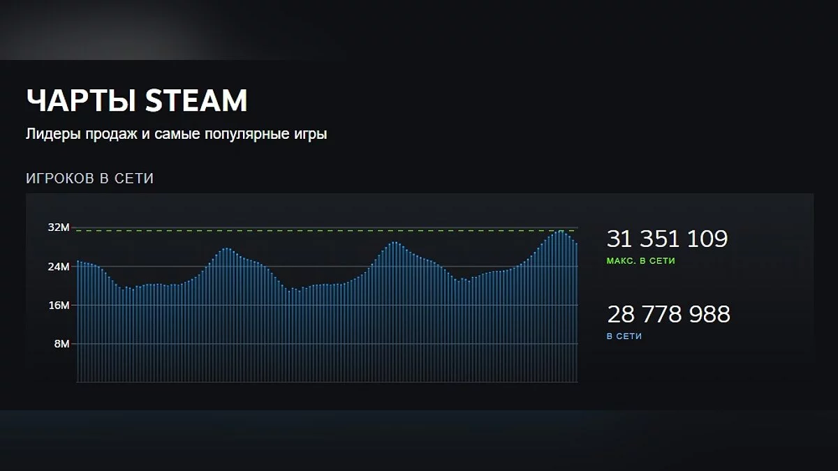 26 ноября магазин Steam поставил новый рекорд по числу пользователей в онлайне. Благодаря осенней распродаже впервые в истории их количество превысило 31 миллион человек. Это на 200 тысяч больше прошлого рекорда.