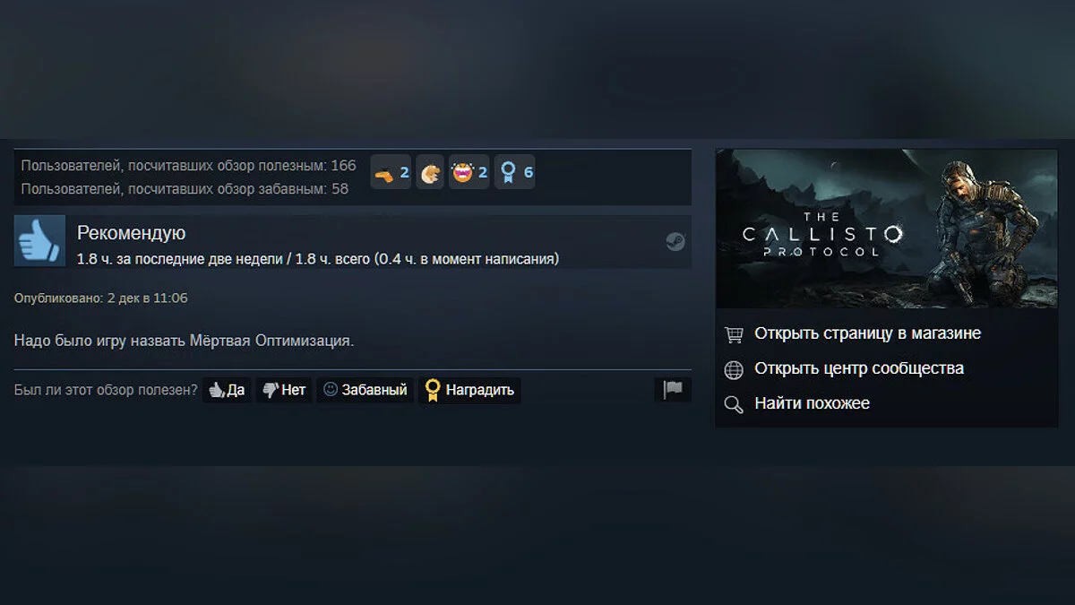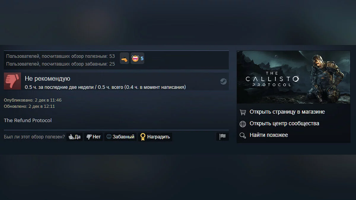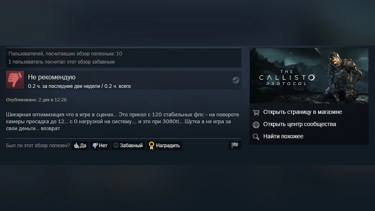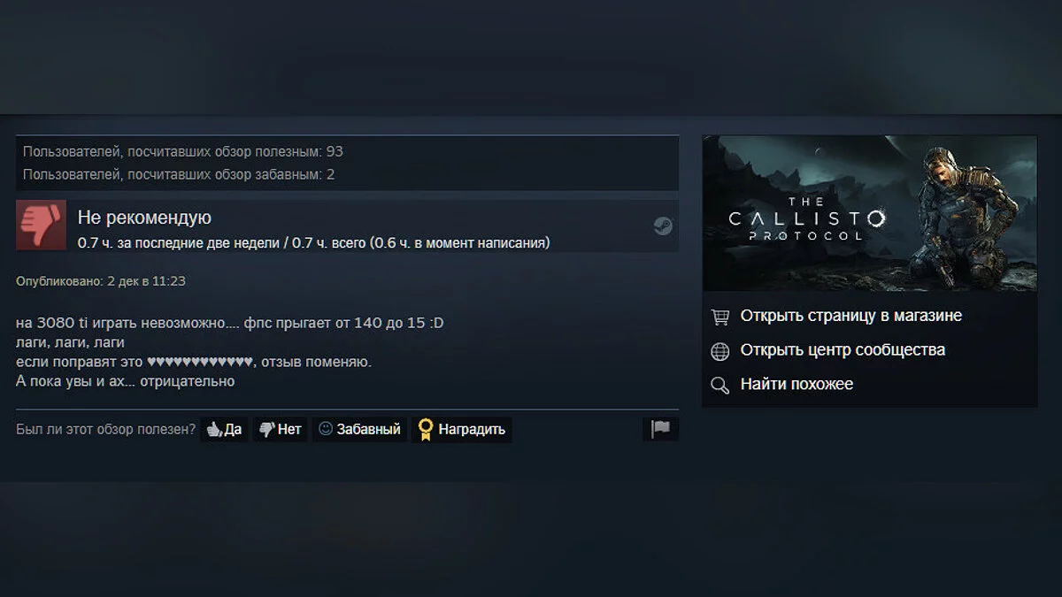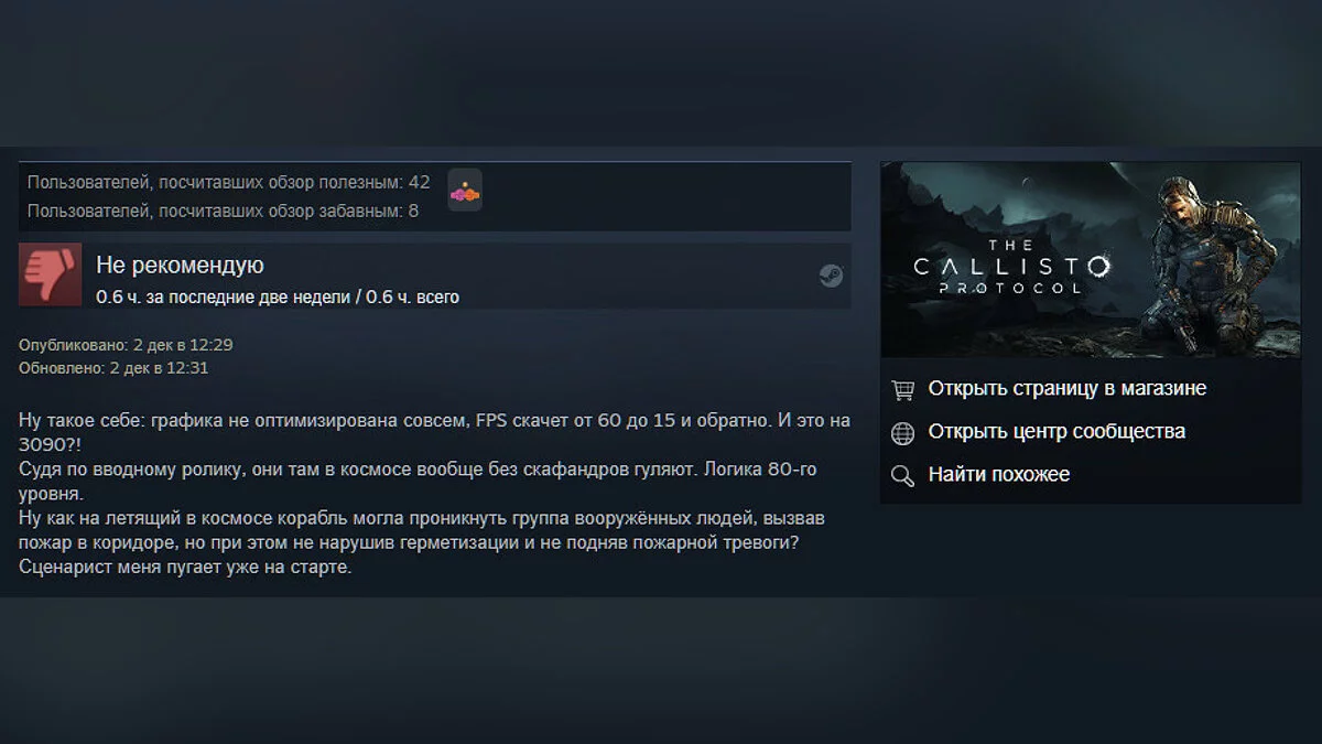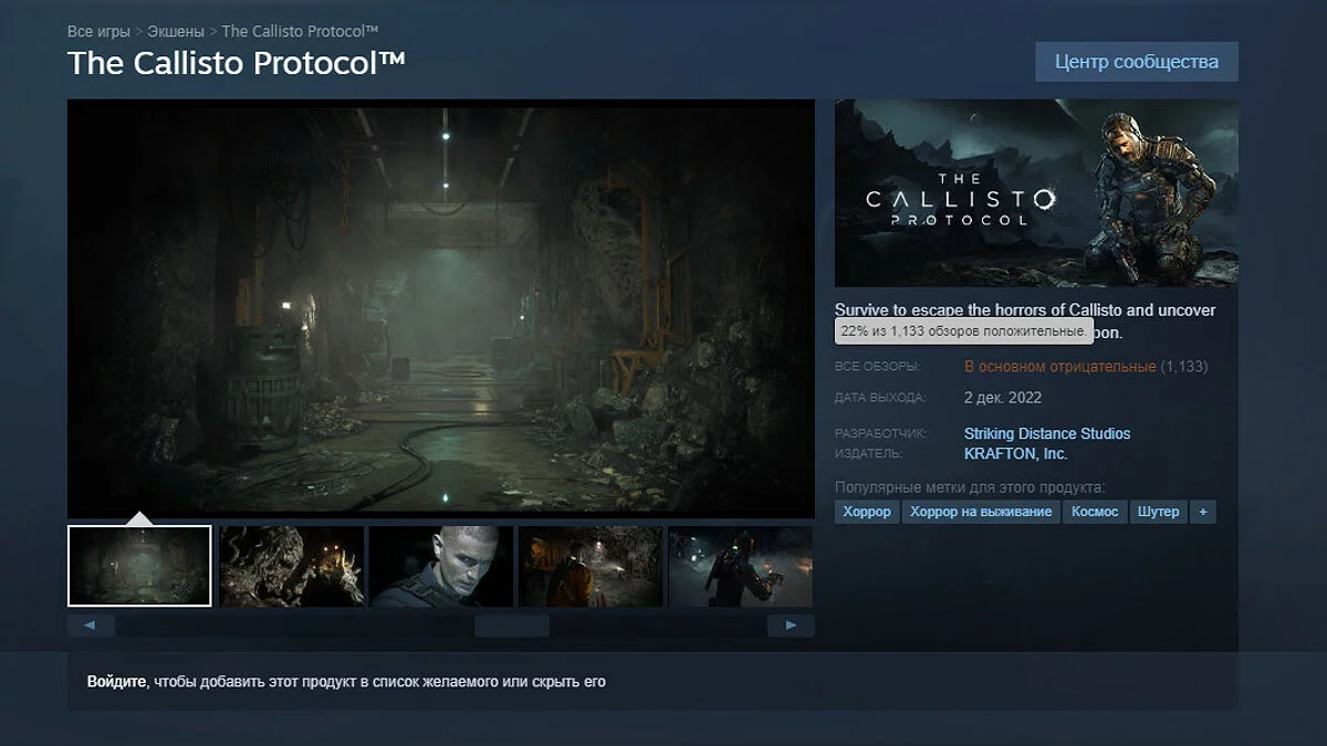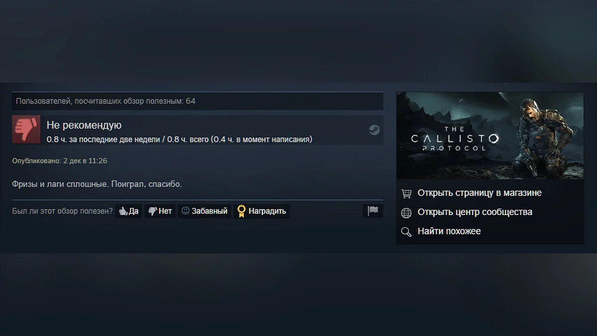 Игроки разгромили ПК-версию The Callisto Protocol и требуют вернуть деньги — рейтинг в Steam всего 22%
