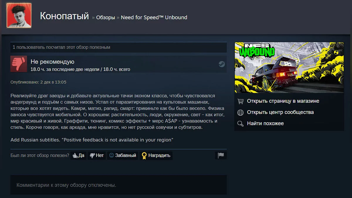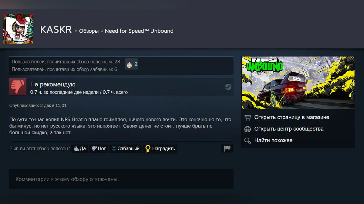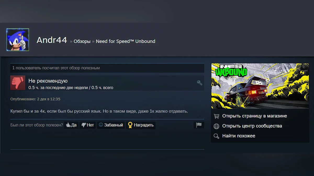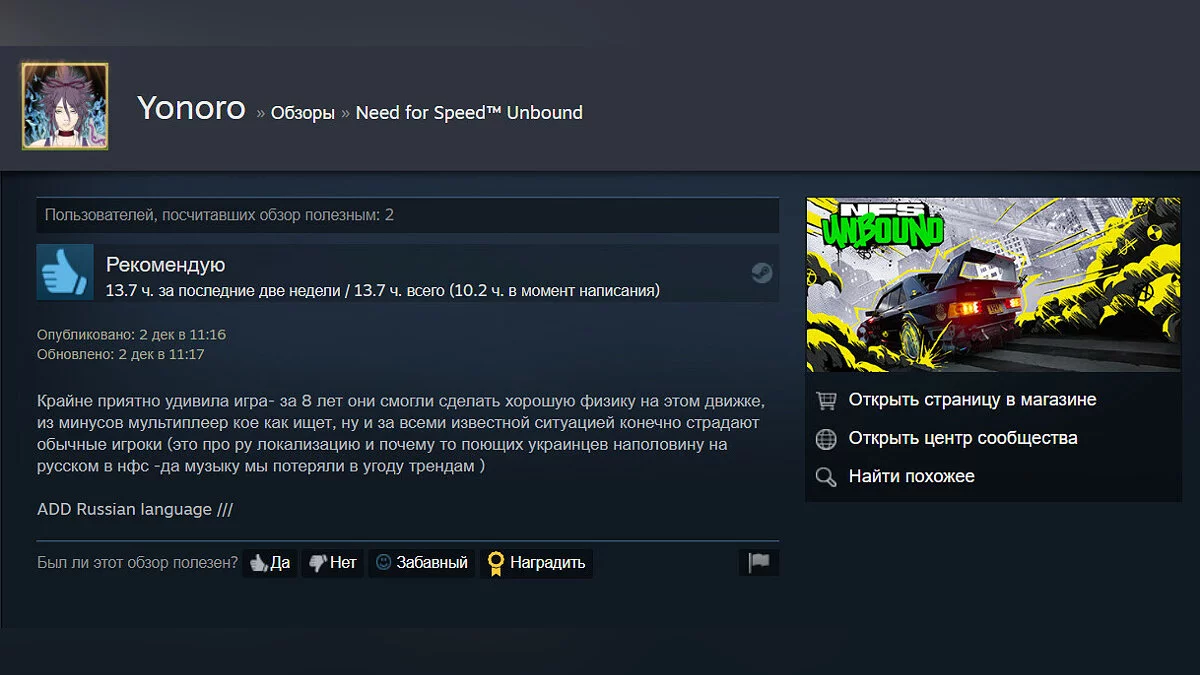 «За 8 лет они смогли сделать хорошую физику» — как геймеры в Steam оценили Need for Speed Unbound