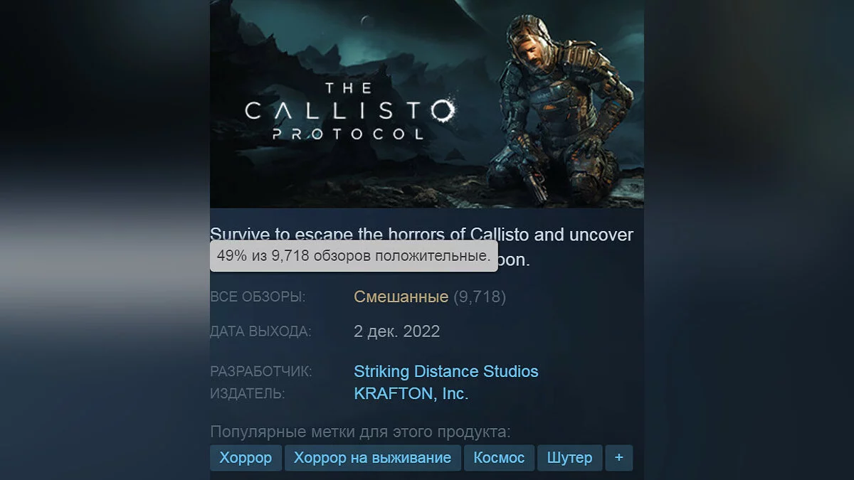 Геймеры подняли рейтинг The Callisto Protocol в Steam. Разгромленная игроками ПК-версия получила патч