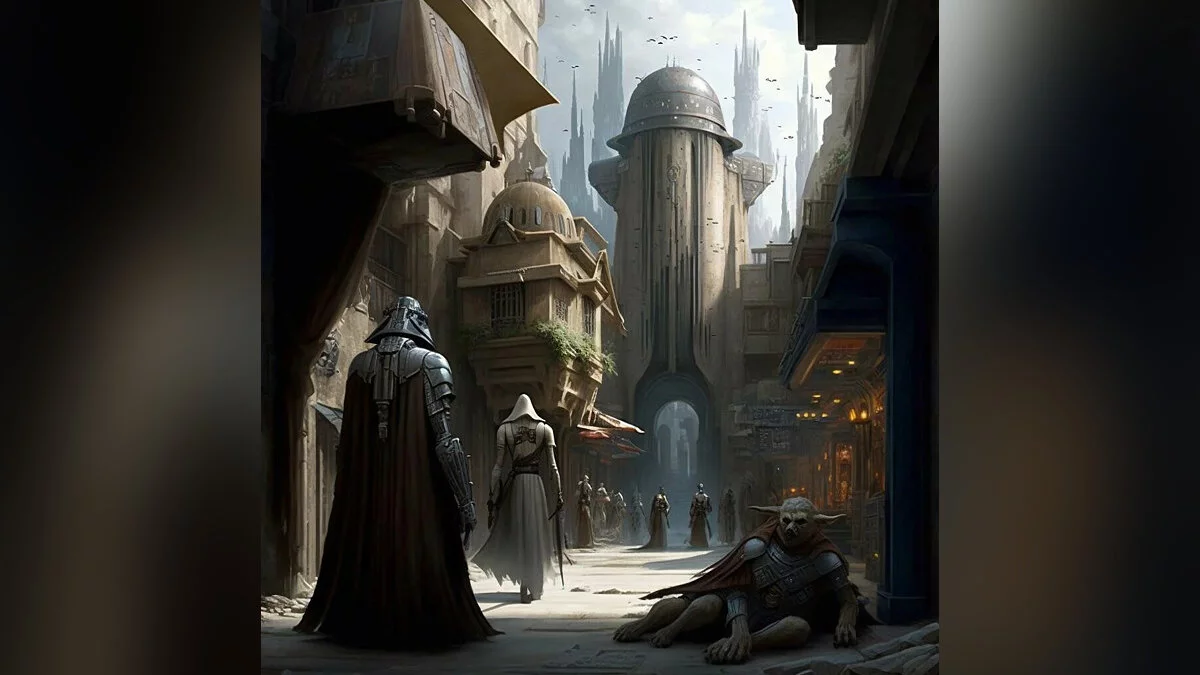 Нейросети продолжают удивлять. На сей раз реддитор под ником Odeath088 опубликовал подборку сгенерированных изображений, где показал героев и локации из «Звёздных войн» (Star Wars) в средневековом стиле. Он использовал нейросеть MidJourney.