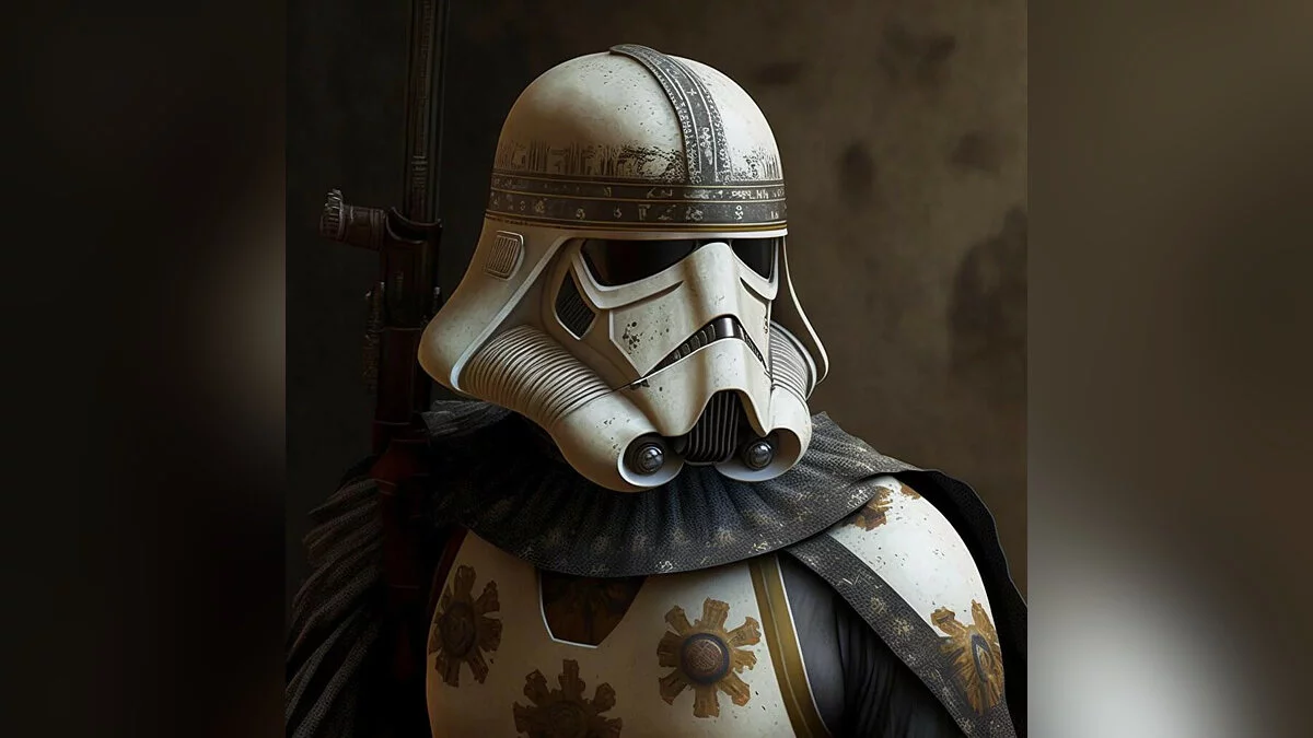 На изображениях можно увидеть Дарта Вейдера, Йоду, Люка Скайуокера, а также ряд других значимых героев и злодеев из киносаги. А на некоторых изображениях есть даже «средневековая» техника.