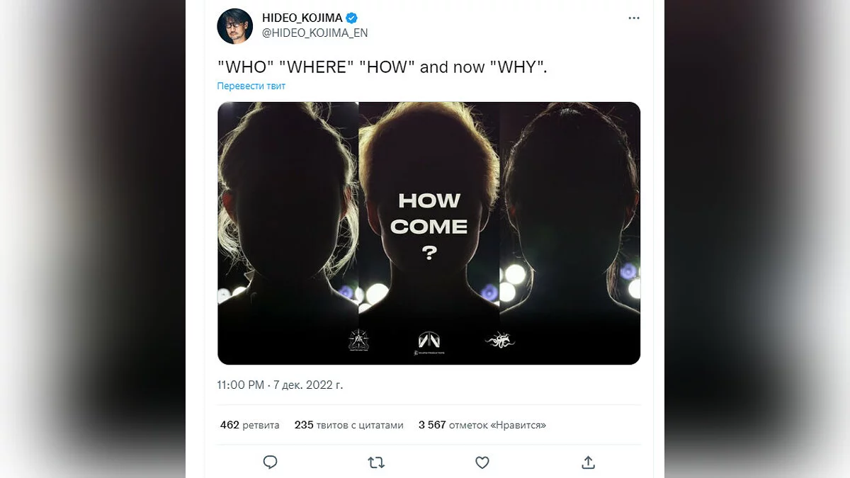 Геймдизайнер Хидео Кодзима (Hideo Kojima) опубликовал у себя в Twitter-аккаунте новый тизер своей будущей игры. И там есть новая актриса, которую ранее не показывали. Также разработчик сопроводил твит припиской: «Кто, когда и почему?».