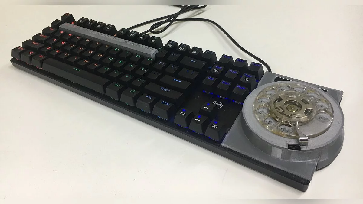 Энтузиасты продолжают создавать невиданные устройства, объединяя в них совершенно различные технологии. Фанат под ником Squidgeefish смог заменить цифровой блок в обычной клавиатуре на диск номеронабирателя от старого аналогового телефона.