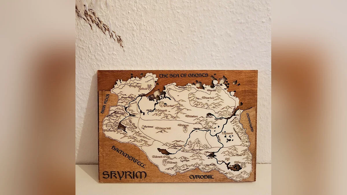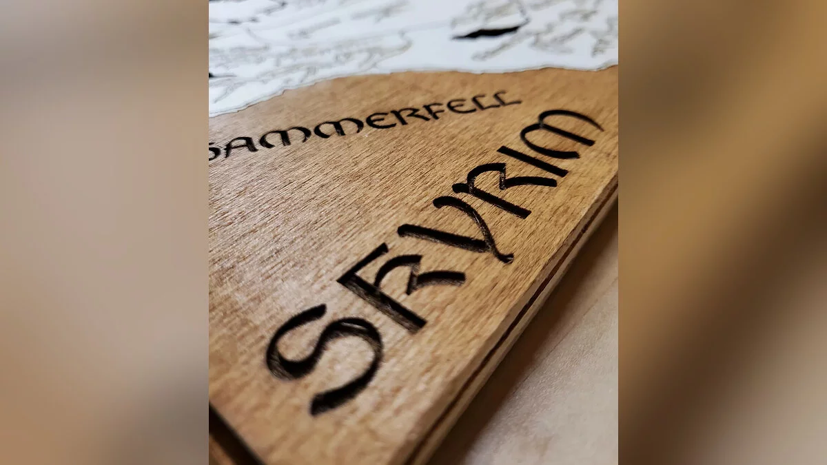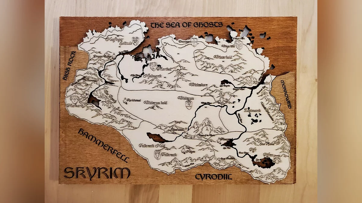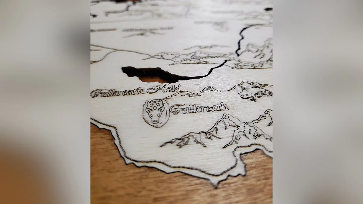 Пользователь Reddit с ником IDontLikeCarrotsBweh поделился фотографиями необычной карты Skyrim, сделанной из настоящего дерева (берёзы). Пост с фото собрал 2,2 тысячи лайков и много положительных комментариев.