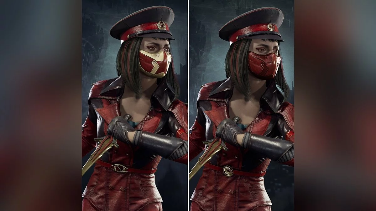 Вместо «Kold War Skarlet» («Холодная война») скин теперь называется просто «Kold Skarlet». Кроме того, как можно заметить на сравнительном скриншоте, небольшим изменениям подверглась маска, пояс и эмблема на фуражке героини. Теперь там логотип Mortal Kombat.