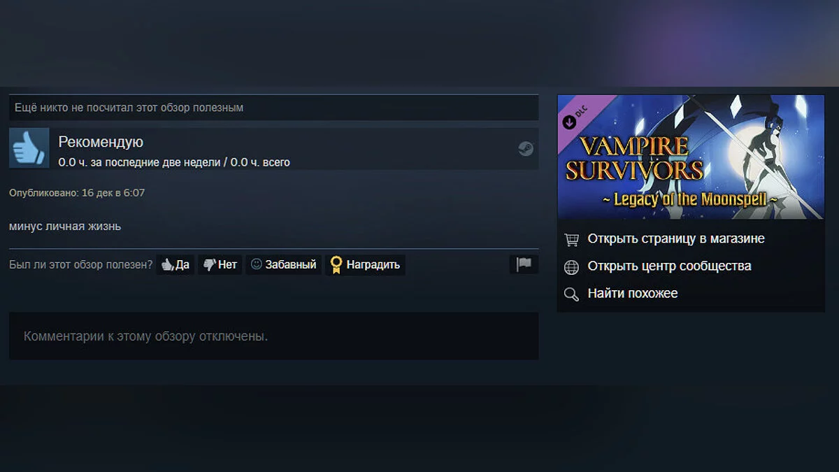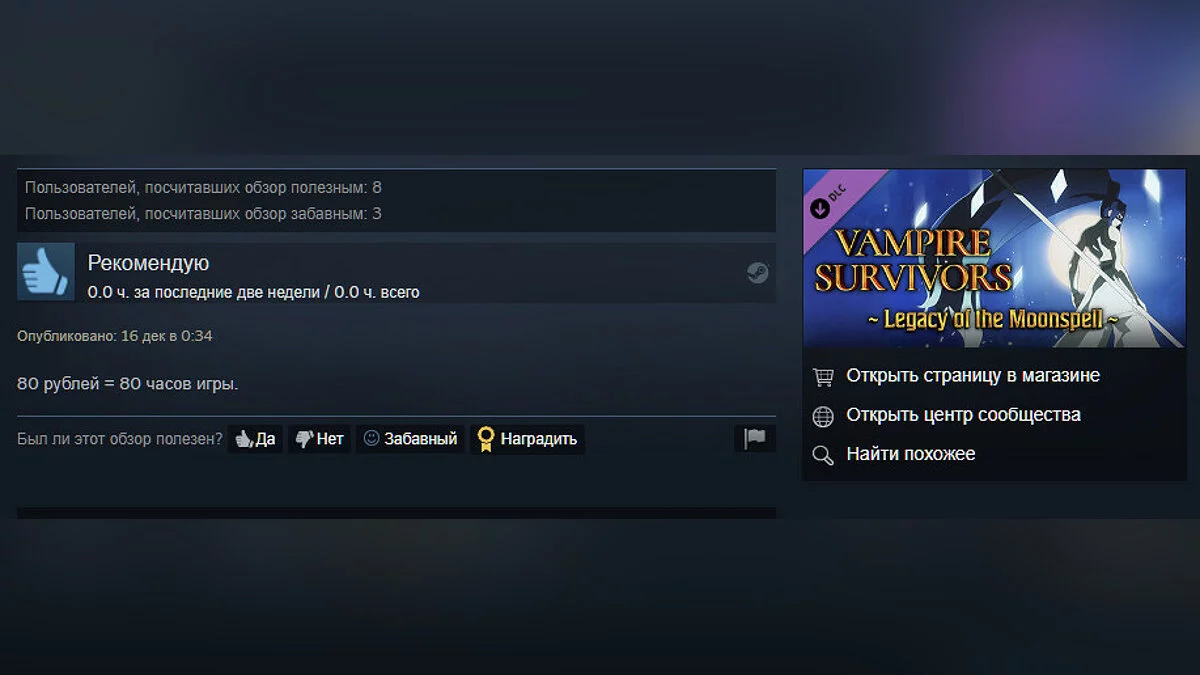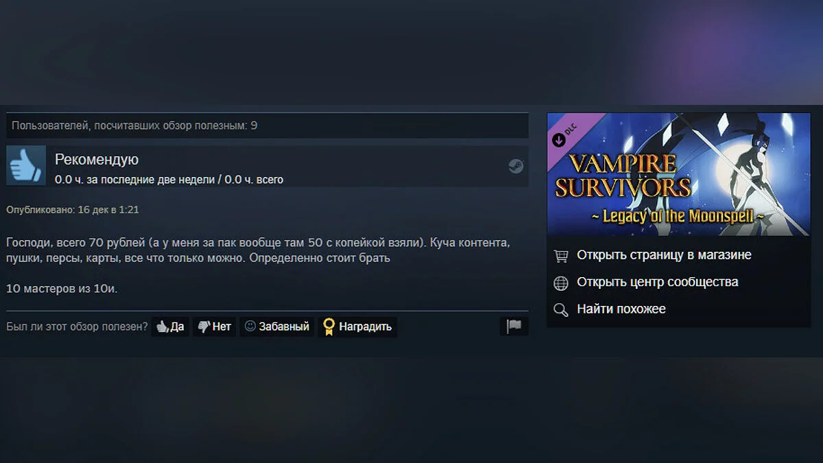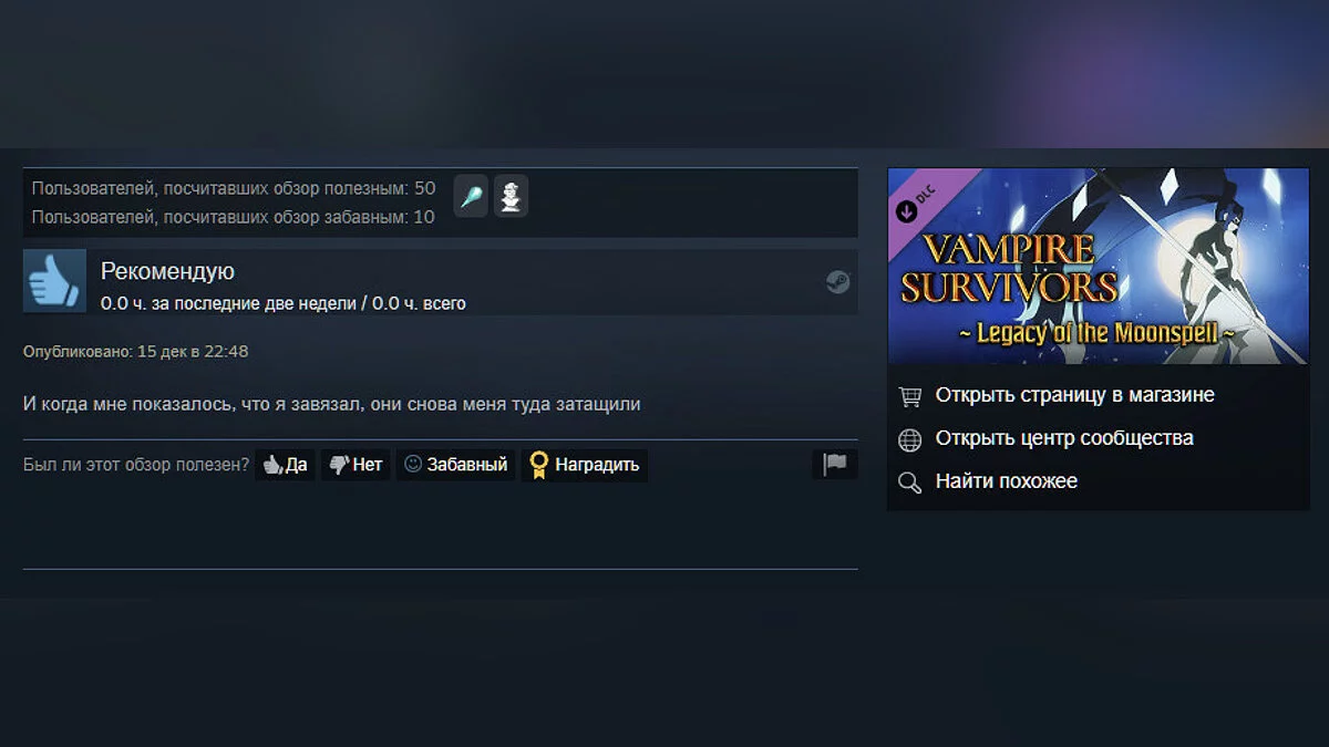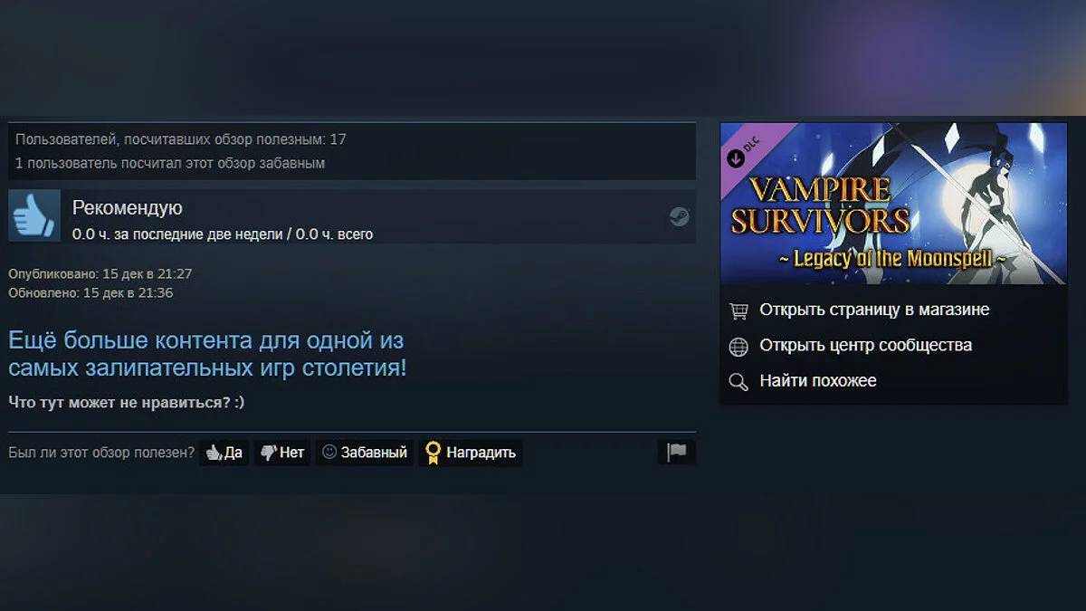 Напомним, что сама Vampire Survivors стала самой залайканной игрой Steam по по версии сайта Steam250. Список с другими популярными тайтлами можно посмотреть здесь.