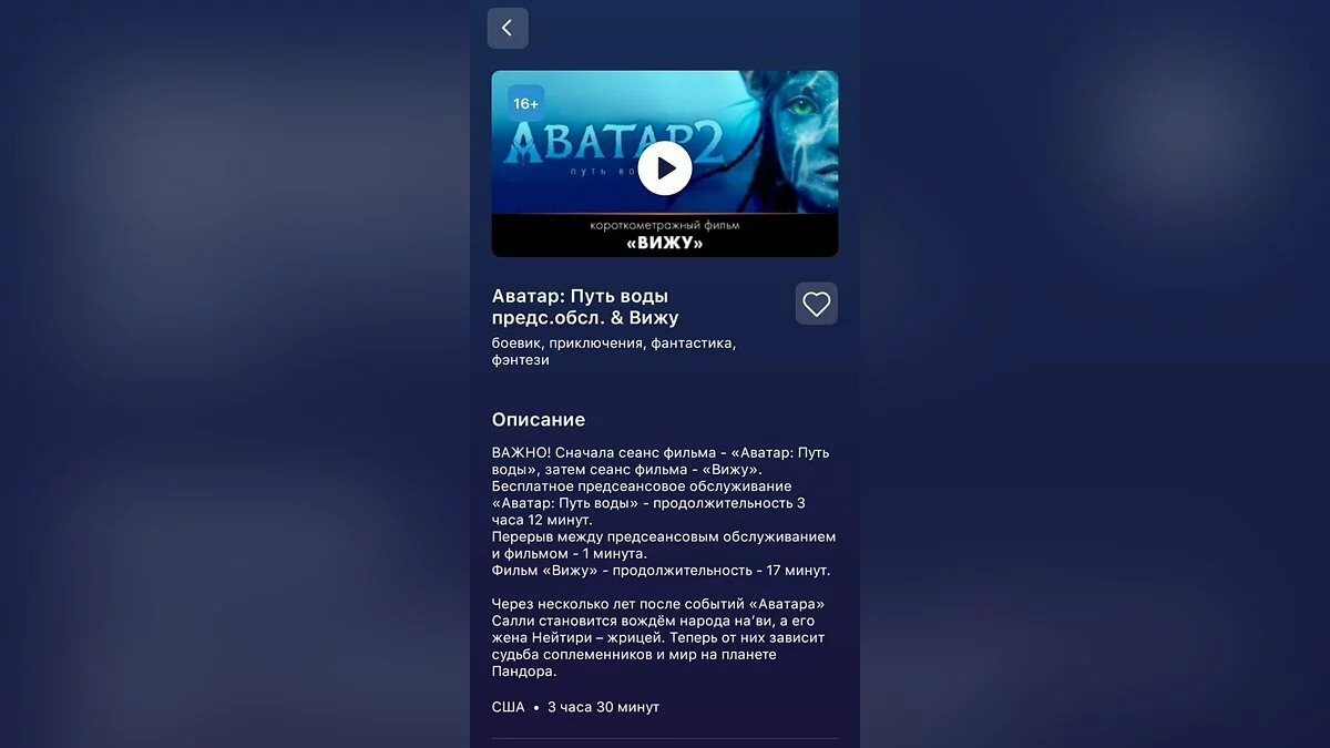 Суть в том, что зрители покупают билет на отечественную короткометражку под названием «Вижу», перед которой и показывают нового «Аватара». Это называется «предсеансовым обслуживанием».