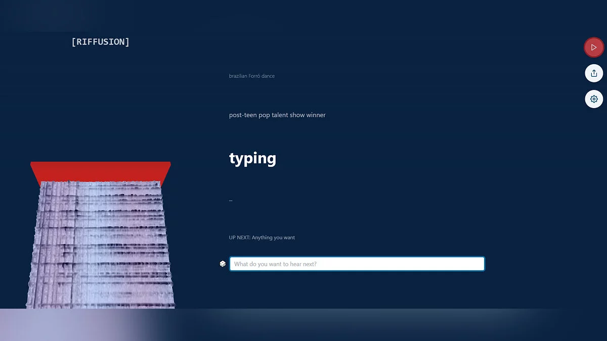 Принцип работы прост: Stable Diffusion генерирует картинку и переводит её в спектрограмму, затем данные переводятся в звук с помощью библиотеки для обработки звука Torchaudio. В результате получается музыкальный трек. При этом в текстовом запросе можно указать жанр — рок, джаз и так далее. Даже можно сгенерировать звук набора на клавиатуре.
