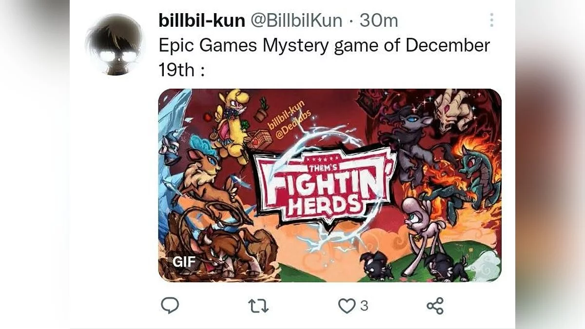 По словам инсайдера, 19 декабря в 19:00 (МСК) в Epic Games Store раздадут Them's Fightin' Herds — вышедший в 2020 году 2D-файтинг с мультяшной графикой, где в качестве бойцов выступают милые зверюшки. В игре доступны два режима — сюжетный (с исследованием, мини-играми и боссами) и онлайн-бои. Игроки высоко оценили проект — в Steam он получил 93% положительных отзывов. Цена файтинга в магазине Valve составляет 435 рублей.
