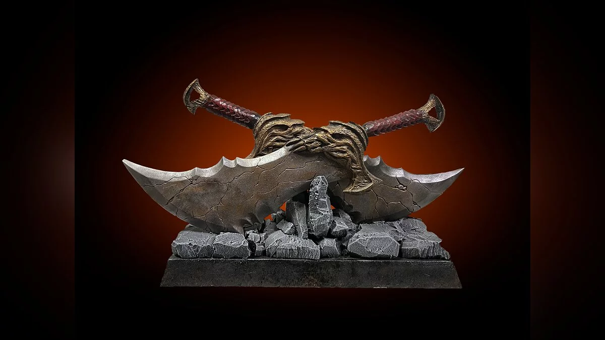 Как выяснилось, есть две версии Клинков Хаоса — обычное ($399 или 28 тыс руб) и коллекционное ($499 или 35 тыс руб). Второе отличается тем, что в комплект входит специальный пьедестал, изготовленный вручную. Конструкция позволяет свободно снимать клинки и брать их в руки. Есть ли доставка в РФ, не уточняется.