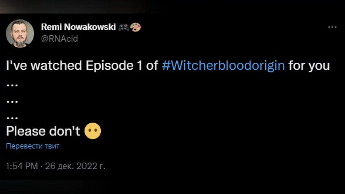 «Кто бы ни дал зеленый свет "Ведьмаку: Происхождение", его должны уволить. Сразу после сценаристов, актеров и человека из кейтеринга»