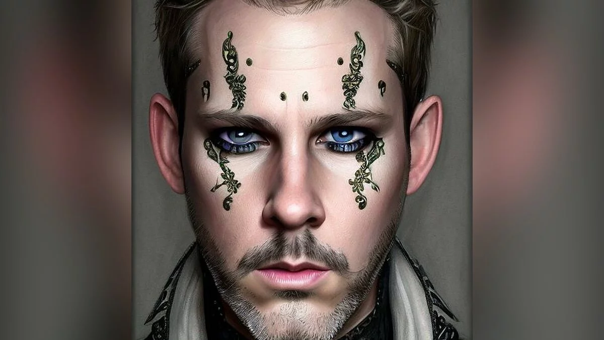 Второй арт показал звезду «Властелина колец» с какими-то рисунками в области глаз.