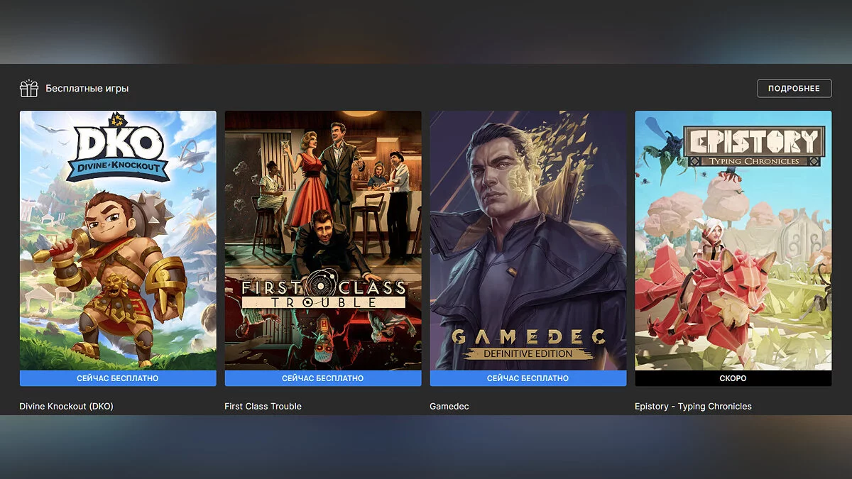 В Epic Games Store началась бесплатная раздача трех игр: First Class Trouble, Gamedec и Divine Knockout. Акция продлится до 19 января 19:00 МСК.