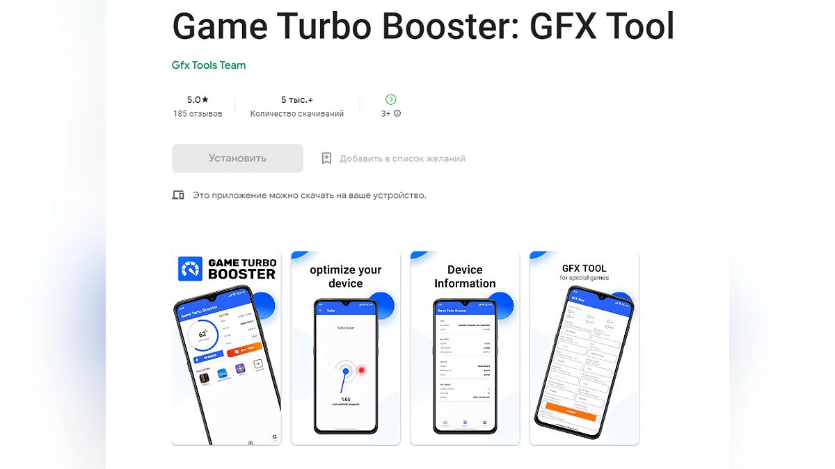 - Game Turbo Booster: GFX Tool — утилита для оптимизации смартфона под игры (загрузить бесплатно.