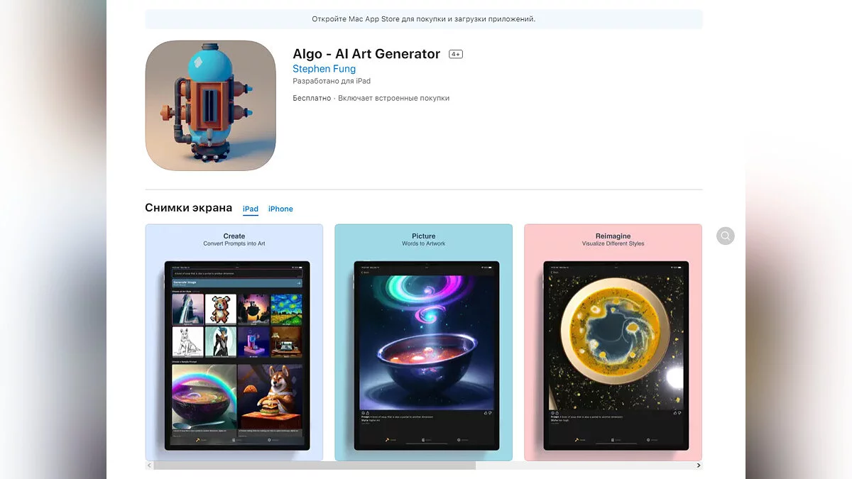 - Algo — AI Art Generator — генератор изображений по текстовому описанию (загрузить бесплатно).