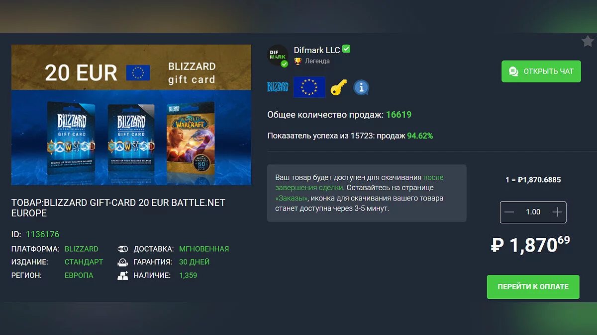 Для покупки товара сначала стоит выбрать продавца, а после добавить карту в корзину. При желании можно ознакомиться с отзывами от покупателей о том или ином продавце.