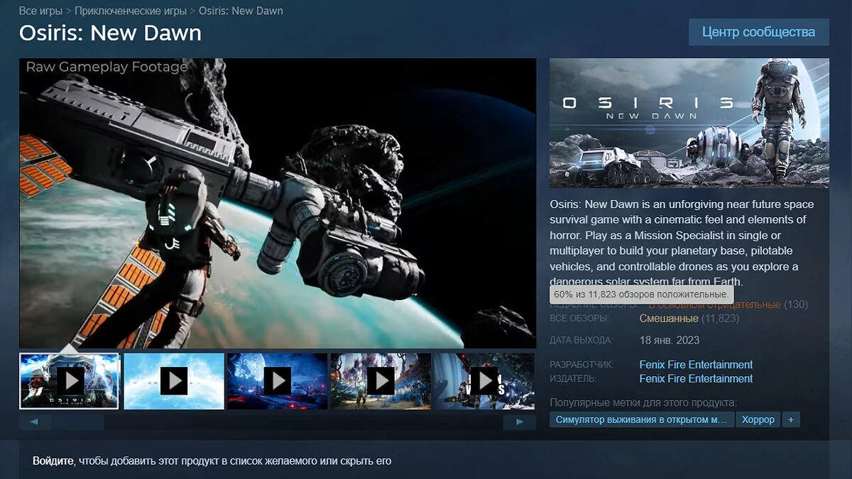 На днях состоялся релиз полной версии космического симулятора выживания под названием Osiris: New Dawn, который больше шести лет находился в раннем доступе. За это время проект получил свыше 11 тысяч отзывов, 60% из которых — положительные.