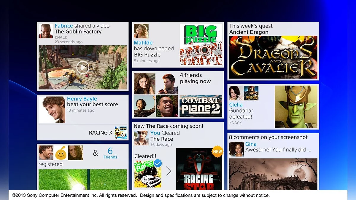Компания Sony опубликовала скриншоты пользовательского интерфейса PlayStation 4. Из них становиться очевидно, что компания сделала большие шаги в сторону социальных функций.