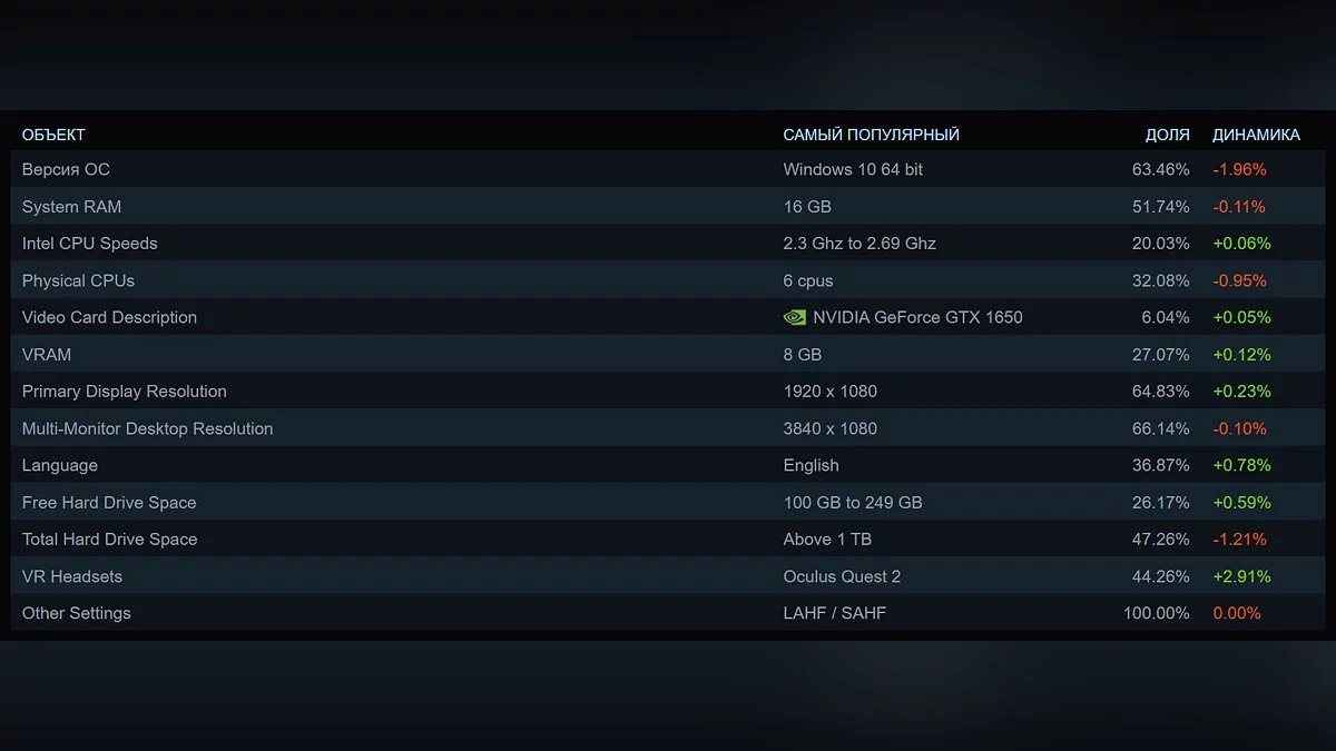 - Видеокарта — NVIDIA GeForce GTX 1650 (6.04%);