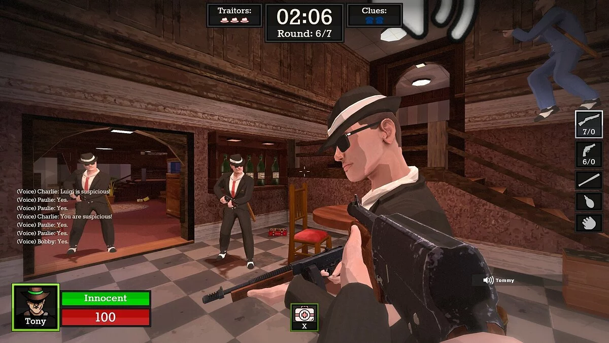 Treason (92% рейтинга) — многопользовательский мафиозный шутер, где в группе игроков случайным образом выбираются несколько предателей. Невинные побеждают, если раскрывают предателей и убивают их. Предатели побеждают, если убивают всех невинных. Страница в Steam.