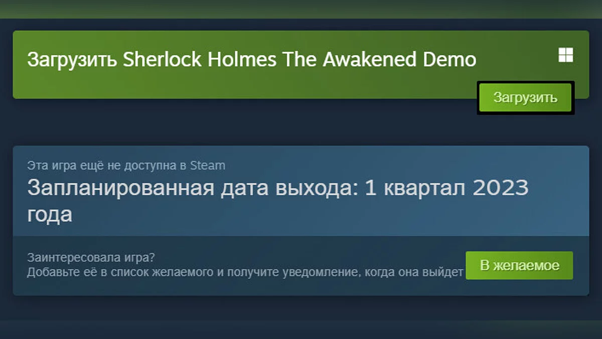 В Steam появилась бесплатная демоверсия Sherlock Holmes The Awakened, ремейка одноимённой игры 2007 года. В демке доступна часть одной из первых глав, где Шерлок посещает психиатрическую лечебницу в Швейцарии.