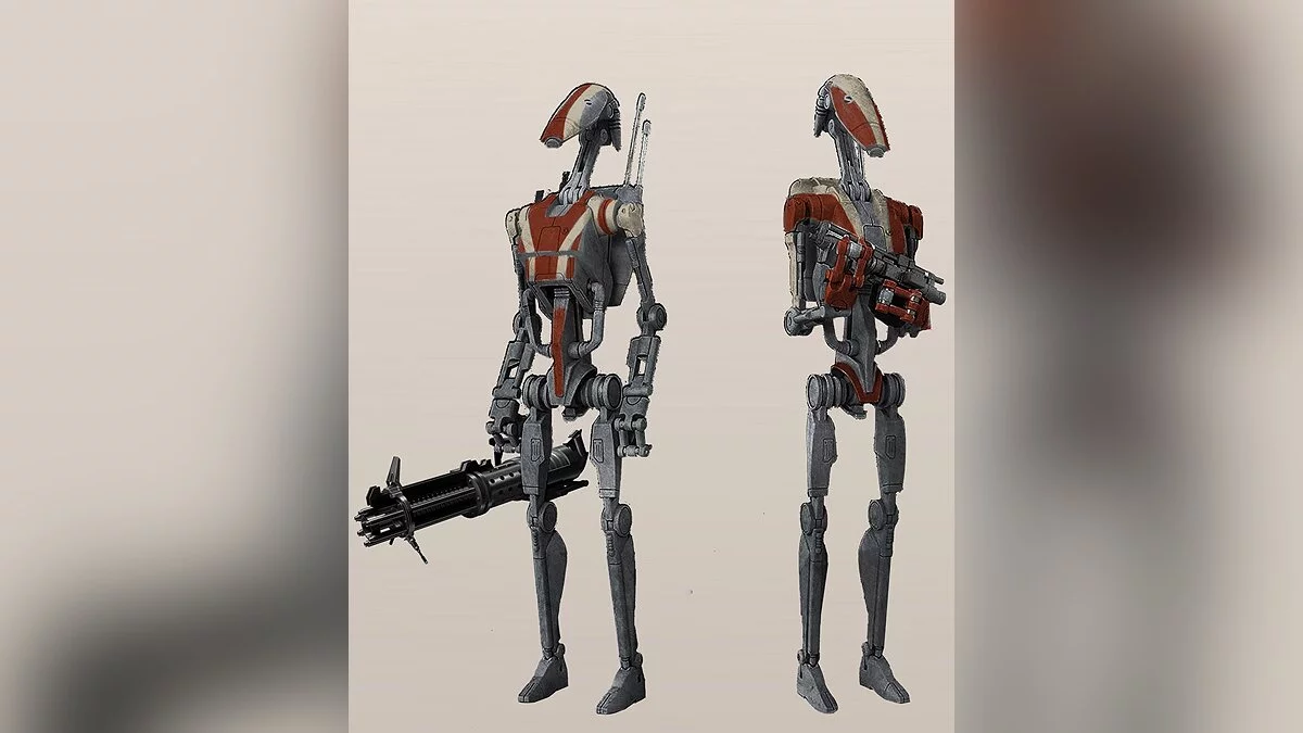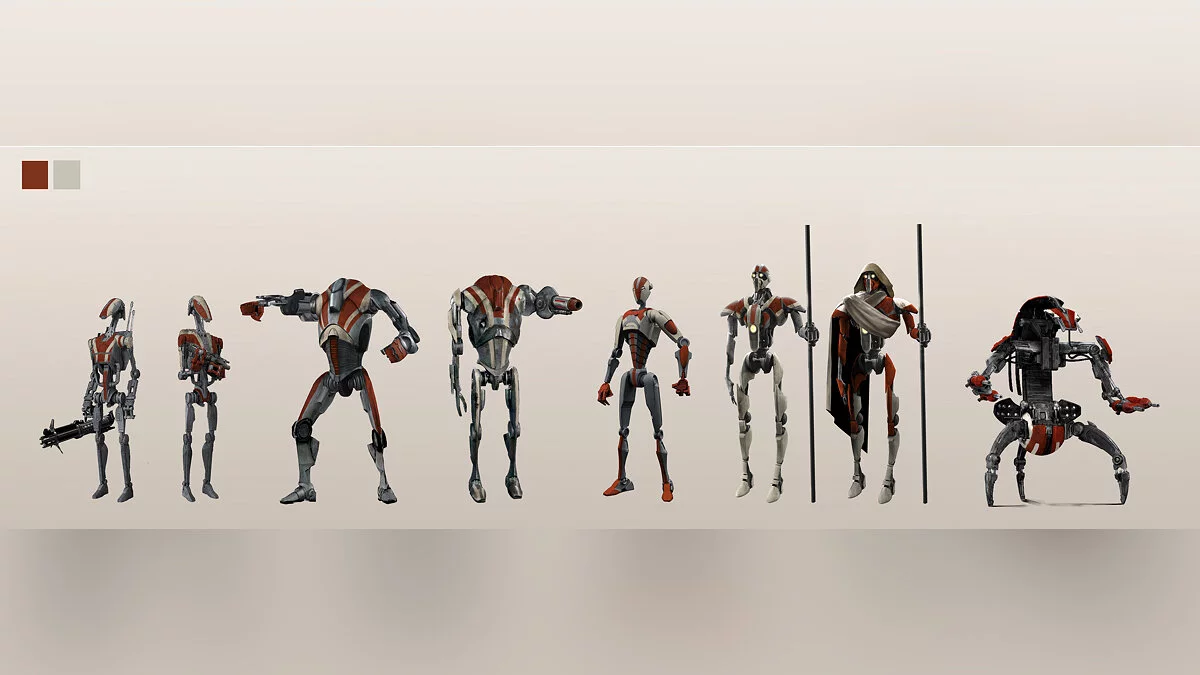 На изображениях можно увидеть стандартного боевого дроида B1 и его улучшенную версию, элитную модель BX, дроида-колесо «Дройдека», «Магнастража», которые использовались для личной охраной генерала Гривуса, дроида-часового, дроида-охранника, а также обычного щитоносца.
