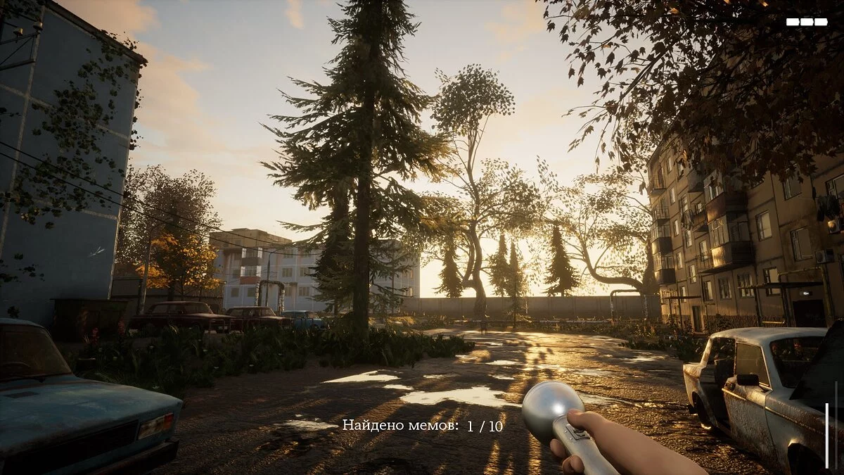 Вы не найдете здесь веселых квестов, зрелищного экшена или других атрибутов, присущих современным играм. Тут, как и в жизни, нет никаких целей помимо тех, которые вы сами перед собой поставите. С точки зрения игрового процесса это классический симулятор ходьбы в узнаваемых для людей из СНГ декорациях. Выберите один из трех доступных уровней и отправляйтесь исследовать старый заброшенный двор или бескрайний зеленый лес.
