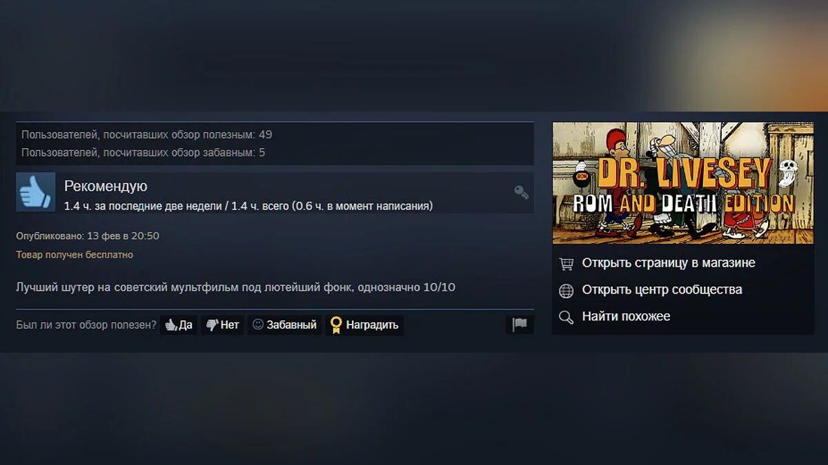 «12 из 10» и «Лютейший фонк»: русскоязычные геймеры пришли в восторг от шутера про Доктора Ливси. Он стоит 18 рублей