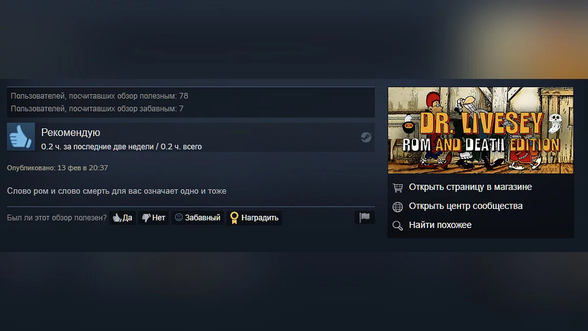 Доктор Ливси, персонаж советского мультфильма «Остров сокровищ» и один из главных мемов 2022 года, стал героем игры. В Steam вышел шутер Dr Livesey Rom and Death Edition, где знаменитая команда отправляется на поиски клада.