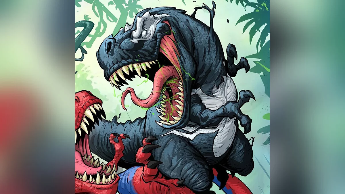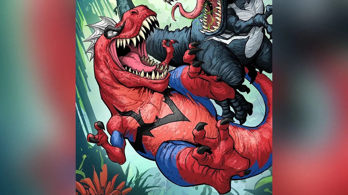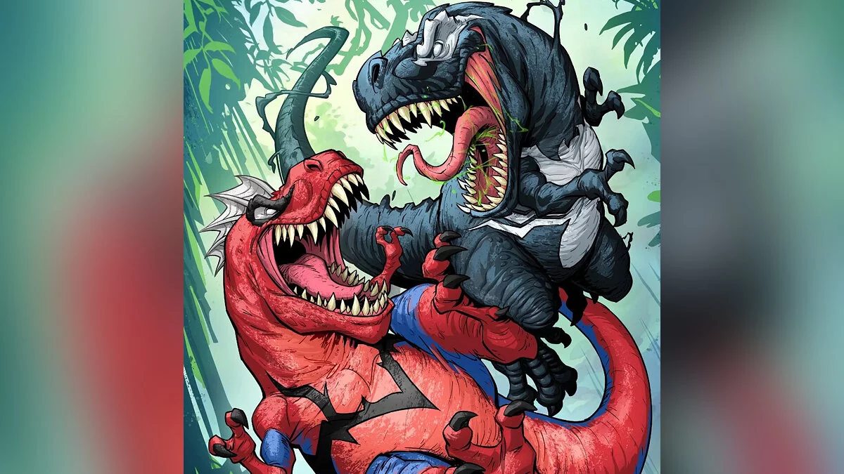 Художник Marvel внезапно показал Человека-паука и Венома в виде динозавров и показал их драку