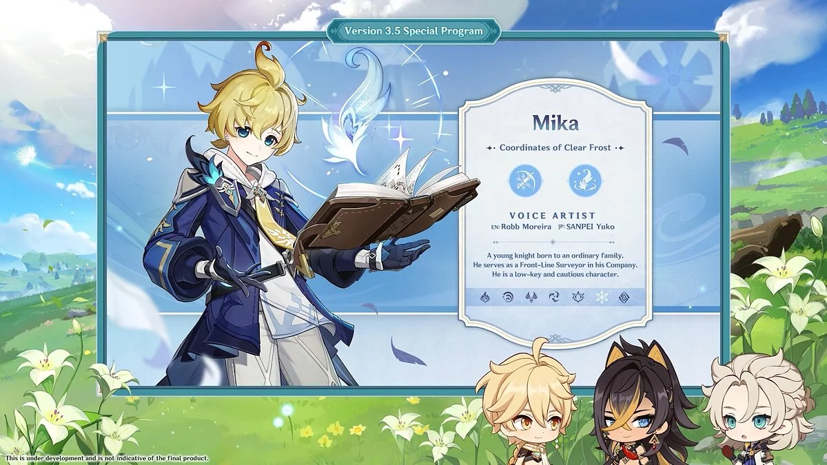Обновление добавит в игру двух новых играбельных персонажей — Дэхью (пятизвёздочная пиро-двуручница) и Мика (четырёхзвёздочный крио-копейщик), задание Архонтов, в котором появится Дайнслейф, задание-встречу с Фарузан, временный режим для ККИ, новое оружие (двуручный меч) и четыре ивента.