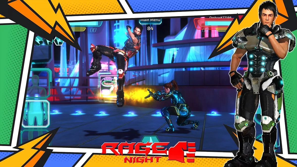 Rage Night может предложить режим кампании, где можно открыть новых персонажей и оружие, а также мультиплеерный режим, в котором придётся соревноваться с другими геймерами. Ещё в игре позволят настраивать внешность бойцов при помощи скинов, флагов, эмблем и эмоций, которые можно заработать в боях. К плюсам игры разработчики отнесли очень простое управление, надежный сетевой код, кроссплатформенность и ежемесячные обновления, которые будут вводить новых бойцов и не только.