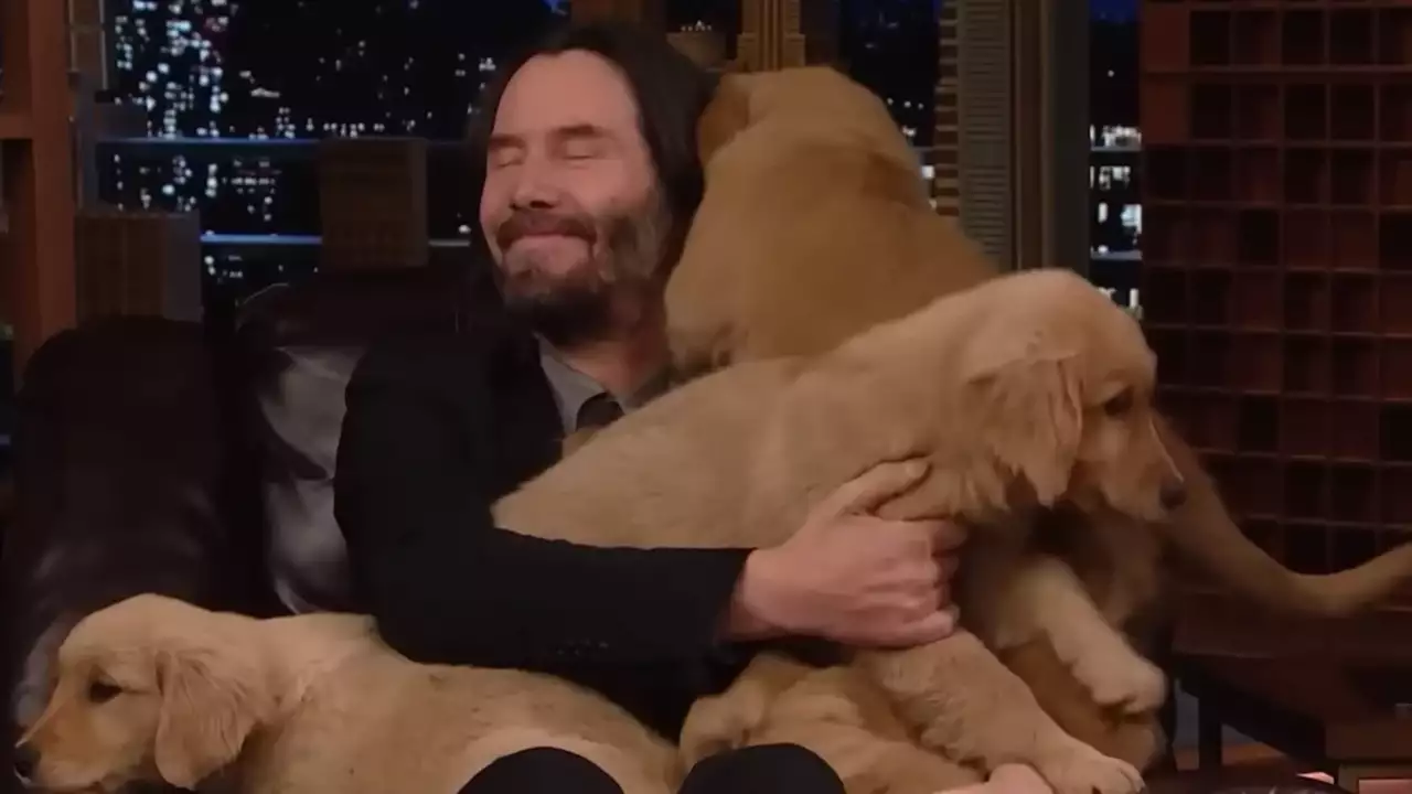 «Я щенячий король!»: Киану Ривз подержал на руках несколько золотистых ретриверов — видео -