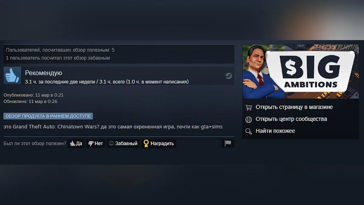 В Steam неожиданно выстрелил Big Ambitions — симулятор начинающего бизнесмена в Нью-Йорке. Игра от датской инди-студии вышла 10 марта и уже заслужила крайне положительные оценки.
