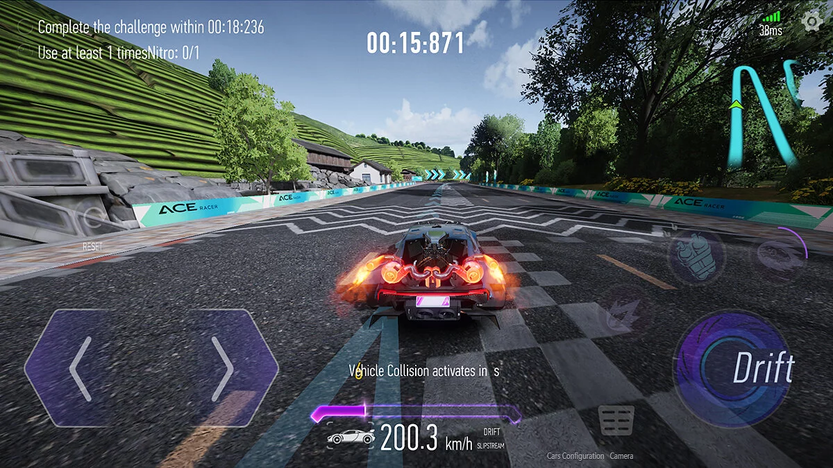 В Ace Racer геймерам доступны более 100 роскошных автомобилей от около 25 производителей, включая Porsche 911 и Nissan GT-R. Их внешность можно настраивать при помощью краски, наклеек, дисков и фар. Кроме того, у каждой машины есть свой уникальный навык. Ещё в игре есть много красивых трасс, расположенных в Лос-Анджелесе, Шанхае, Токио, Неваде и Калифорнии, а также несколько режимов, включая мультиплеер и карьеру.