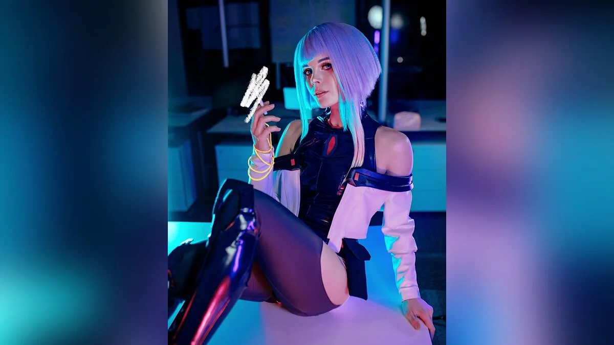 «Кто готов полететь со мной на Луну? Но сначала посмотрите мои свежие фото Люси! Мы приложили большие усилия, чтобы запечатлеть атмосферу киберпанка, и я думаю, что у нас это получилось!», — написала косплеерша.