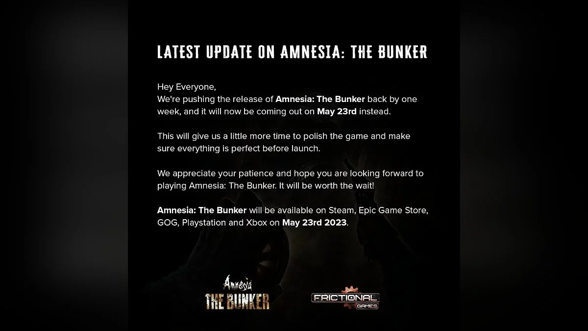 Студия Frictional Games объявила об очередном переносе хоррора Amnesia: The Bunker. Игру отложили всего на неделю — теперь она выйдет 23 мая.